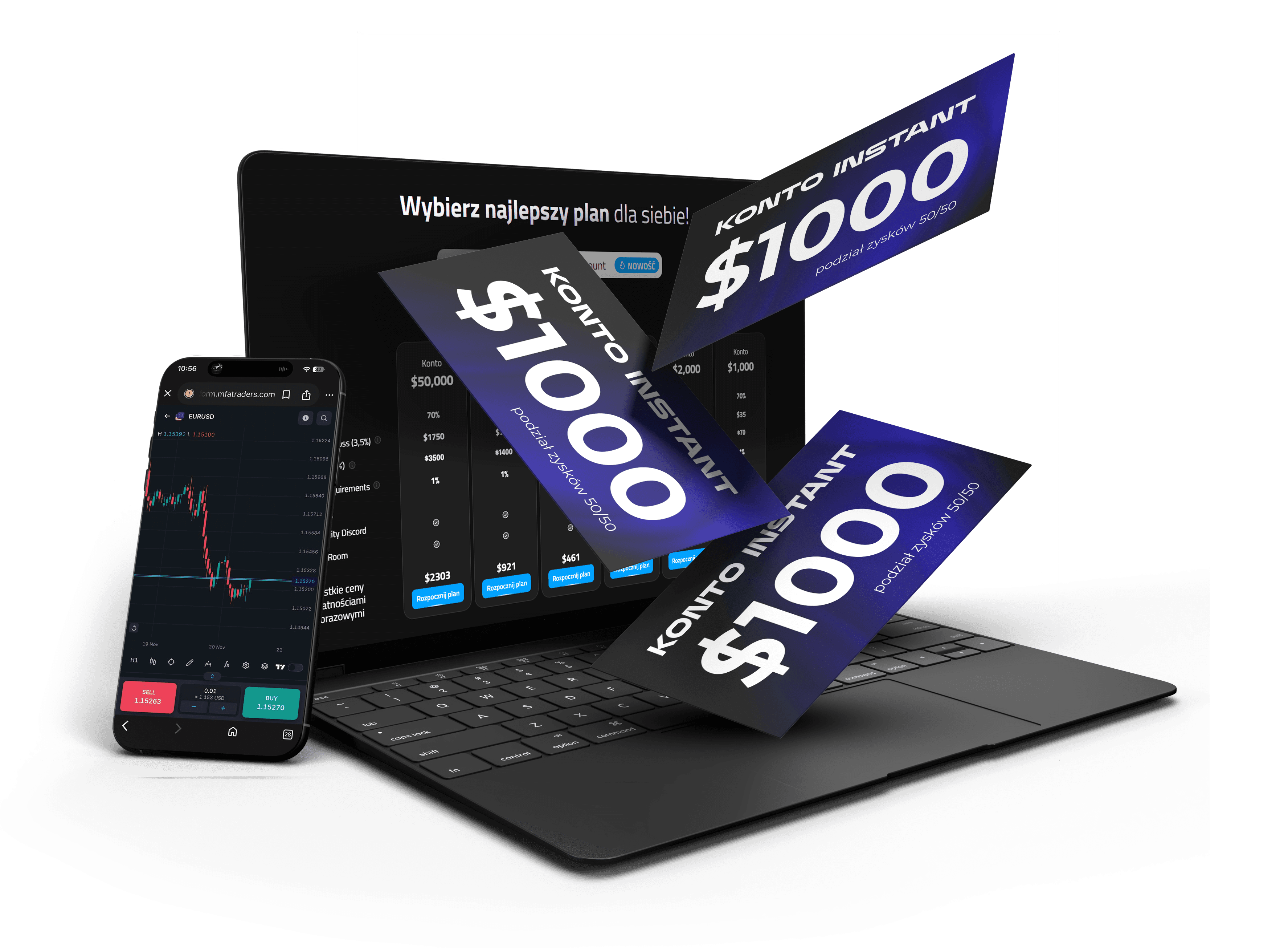 Nasz zespół odpowie na wszystkie Twoje pytania, a dodatkowo dostaniesz rabat na wszystkie konta Challenge i Instant w MFA Traders